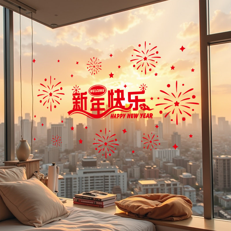 新年小区大门玻璃贴纸2026元旦马年装饰窗花贴春节过年静电贴餐厅
