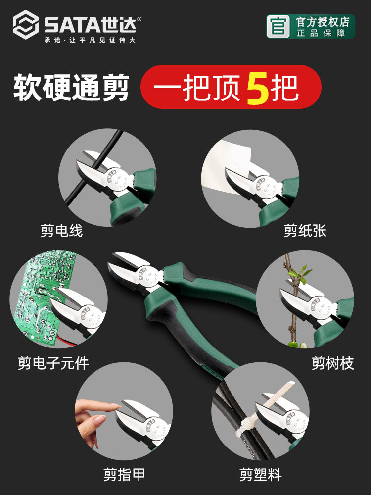 世达斜口钳电工专用偏口钳超硬平口剪70632斜嘴钳6水口钳5寸70642