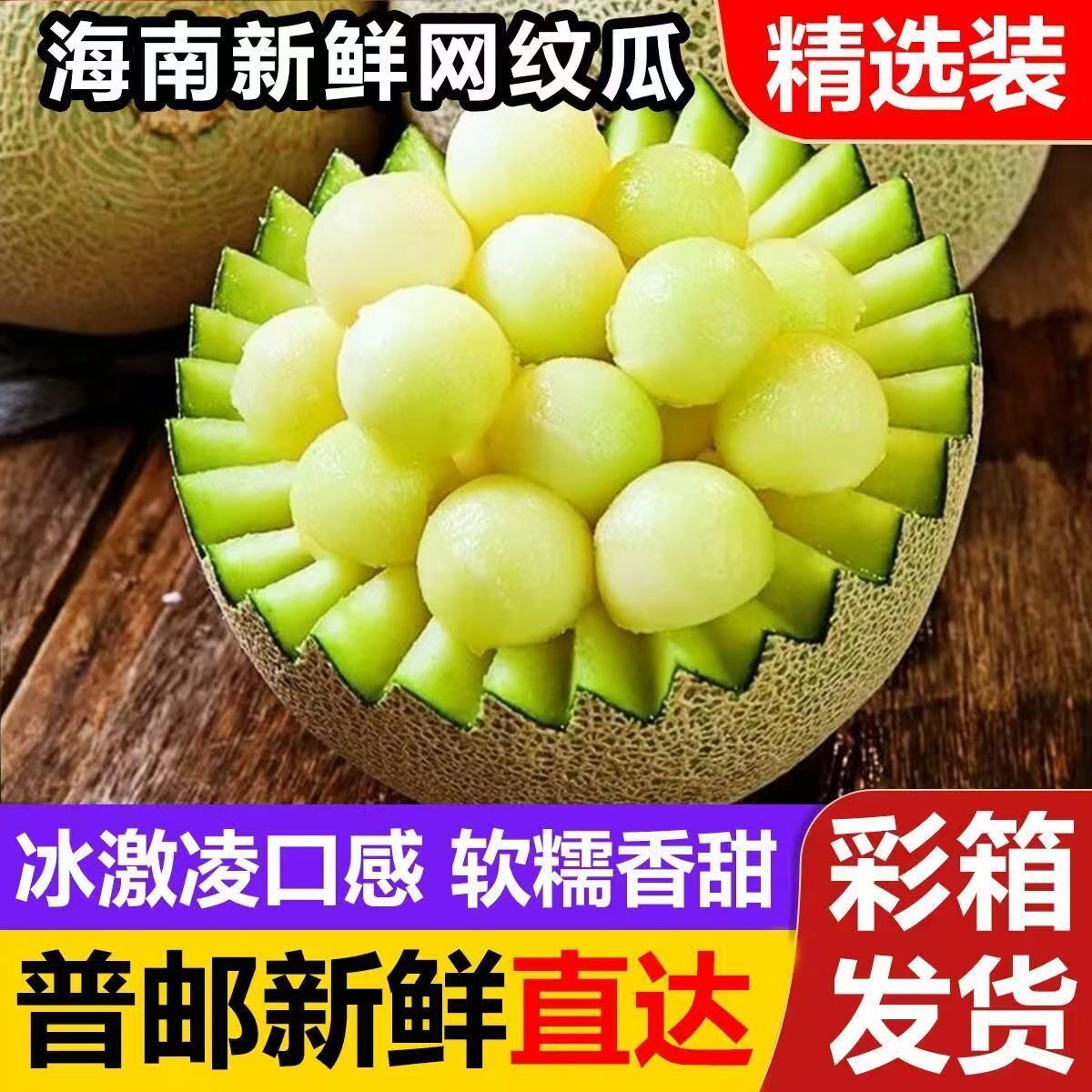 海南玫珑瓜网纹蜜瓜冰淇淋甜瓜一藤一瓜当天现摘当季水果哈密瓜