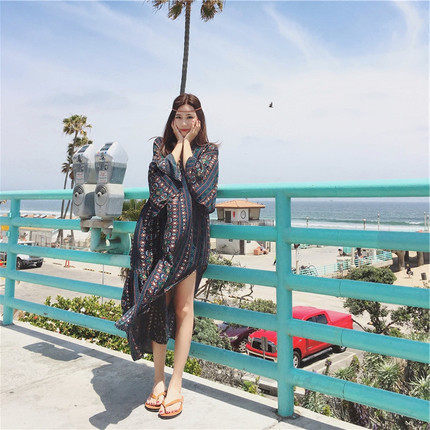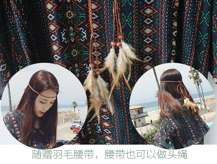 民族风沙滩裙女三亚海边度假波西米亚长裙大码胖mm显瘦红色连衣裙