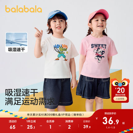 巴拉巴拉T恤男女童吸湿速干纯棉