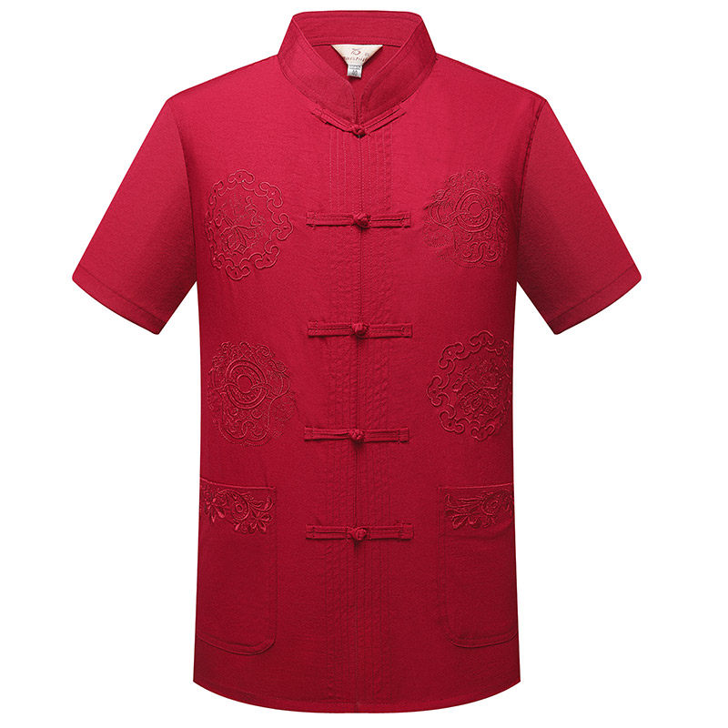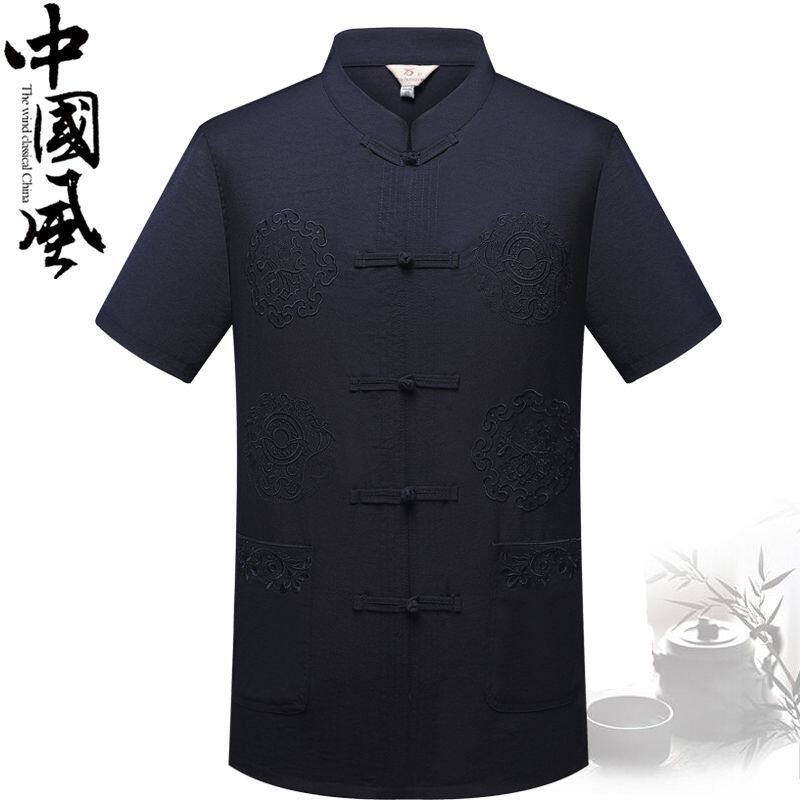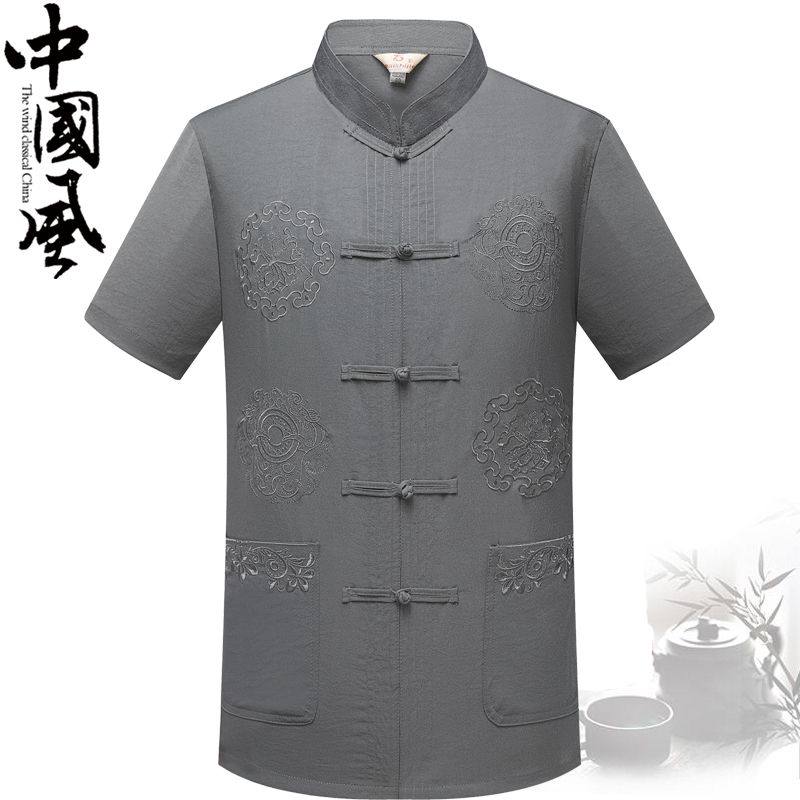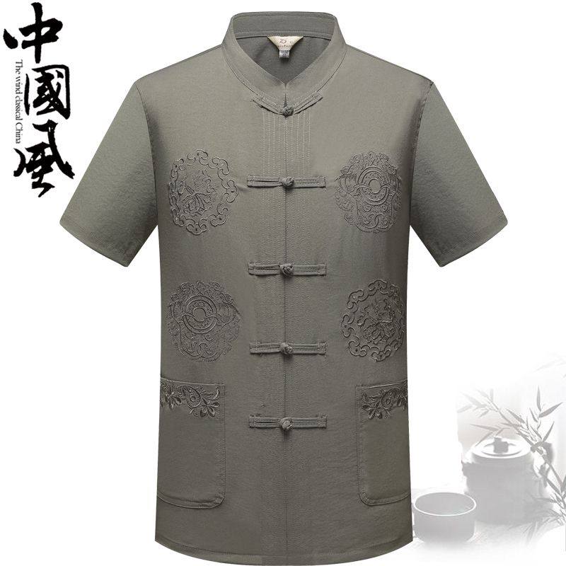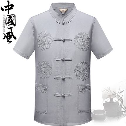 唐装汉服冰丝短袖衬衫爸爸夏季套装中老年人爷爷衣服中国古风男装