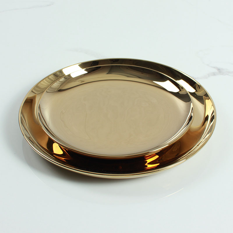金色电镀陶瓷盘收纳托盘点心盘水果盘子银色盘子陶瓷托盘装饰盘