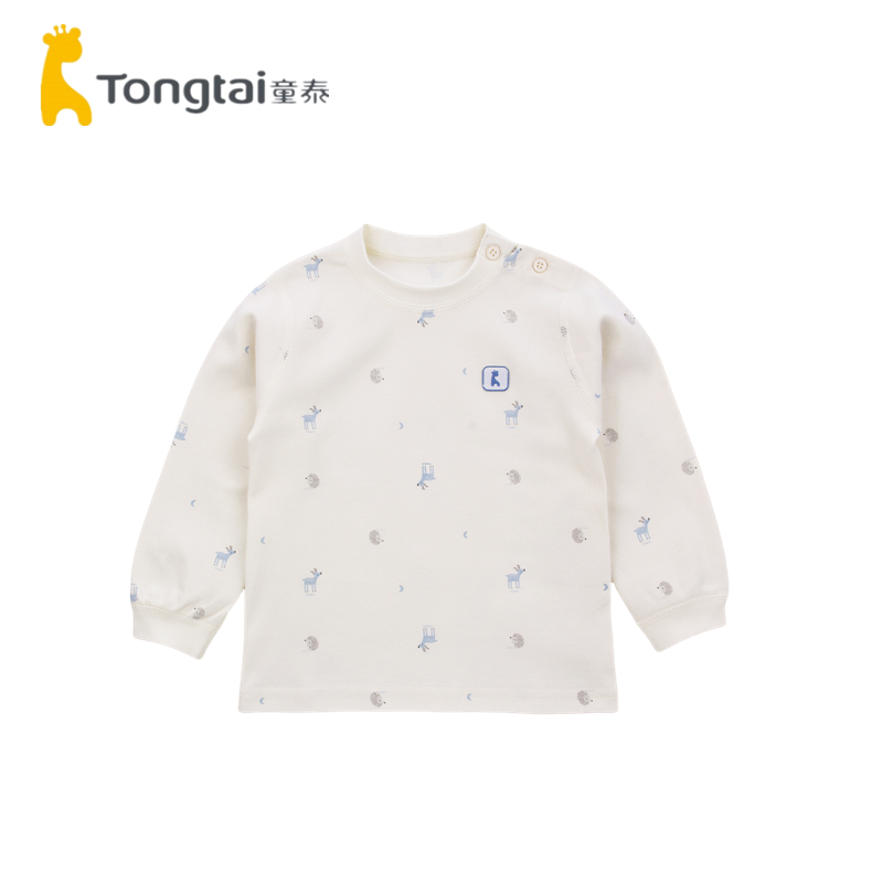 童泰婴儿纯棉秋衣1-3岁男女宝宝肩扣套头内衣秋冬打底长袖上衣服