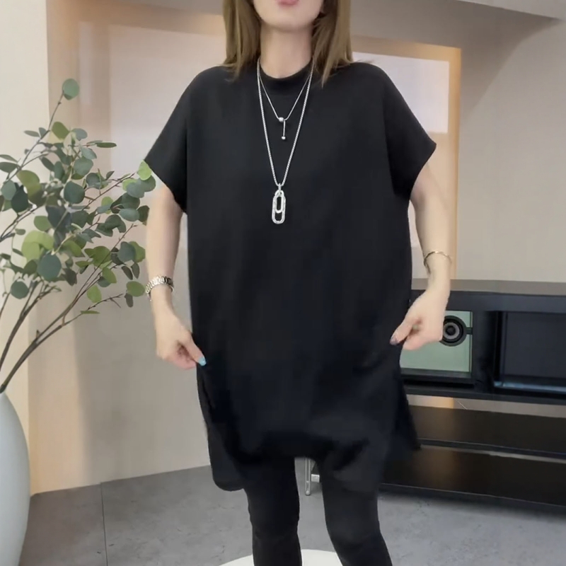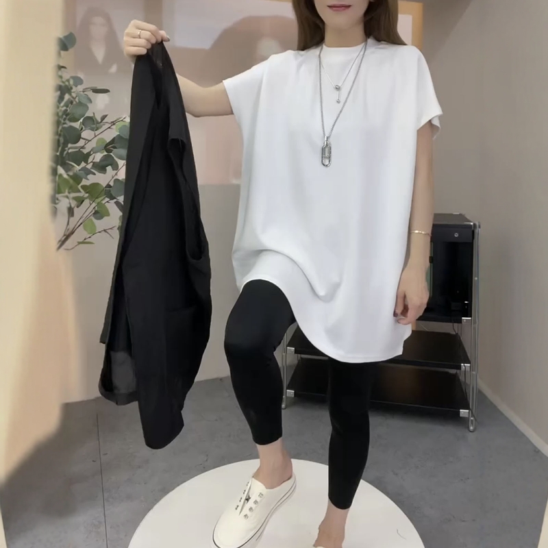 欧货2025夏新款显瘦百搭圆领短袖T恤女宽松休闲中长款打底衫上衣