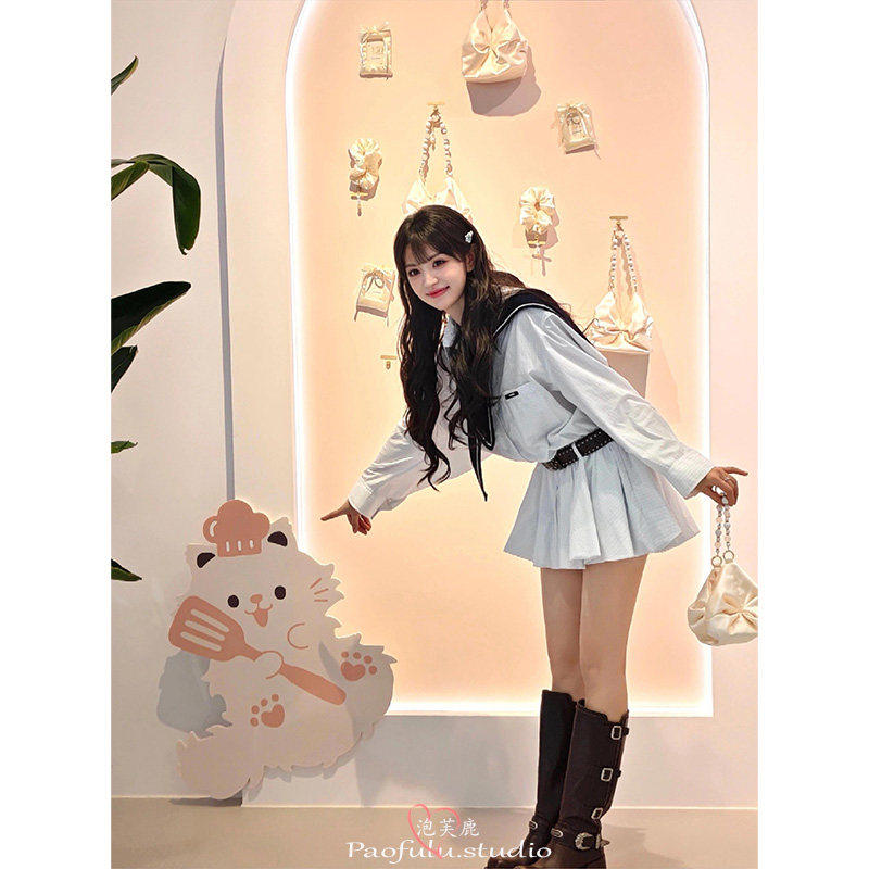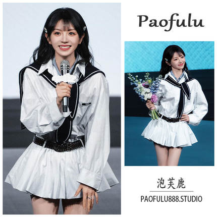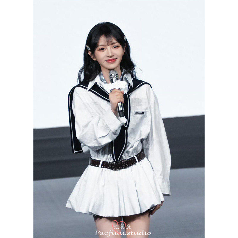 日本offcat田曦薇明星同款学院风白色格纹假两件衬衫连衣裙女早春