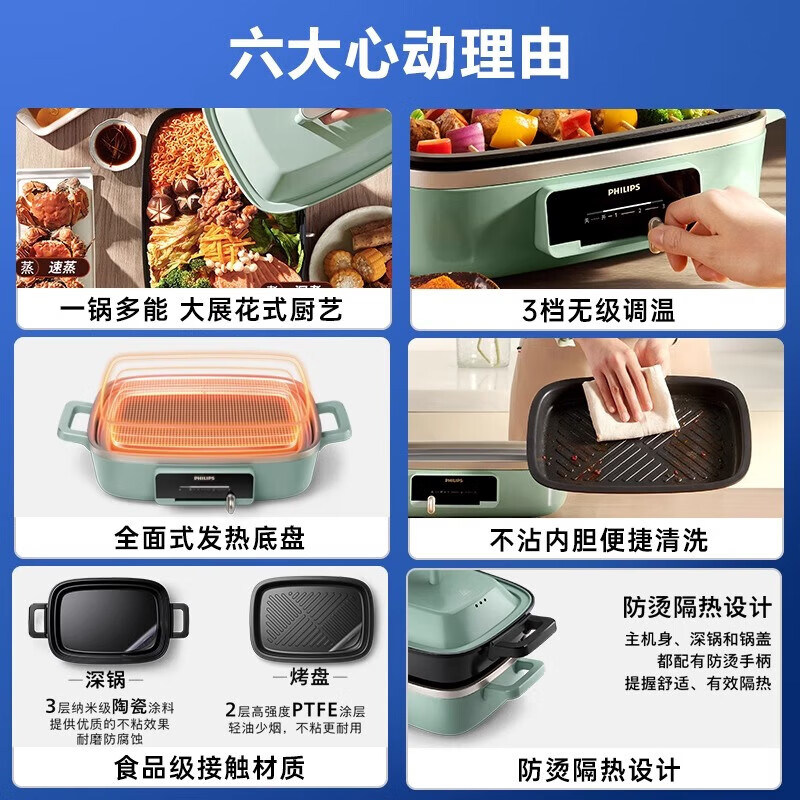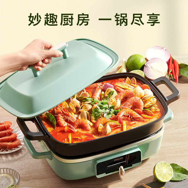 飞利浦家用电火锅HD2250多功能料理锅电热锅分体火锅烤锅正品新款