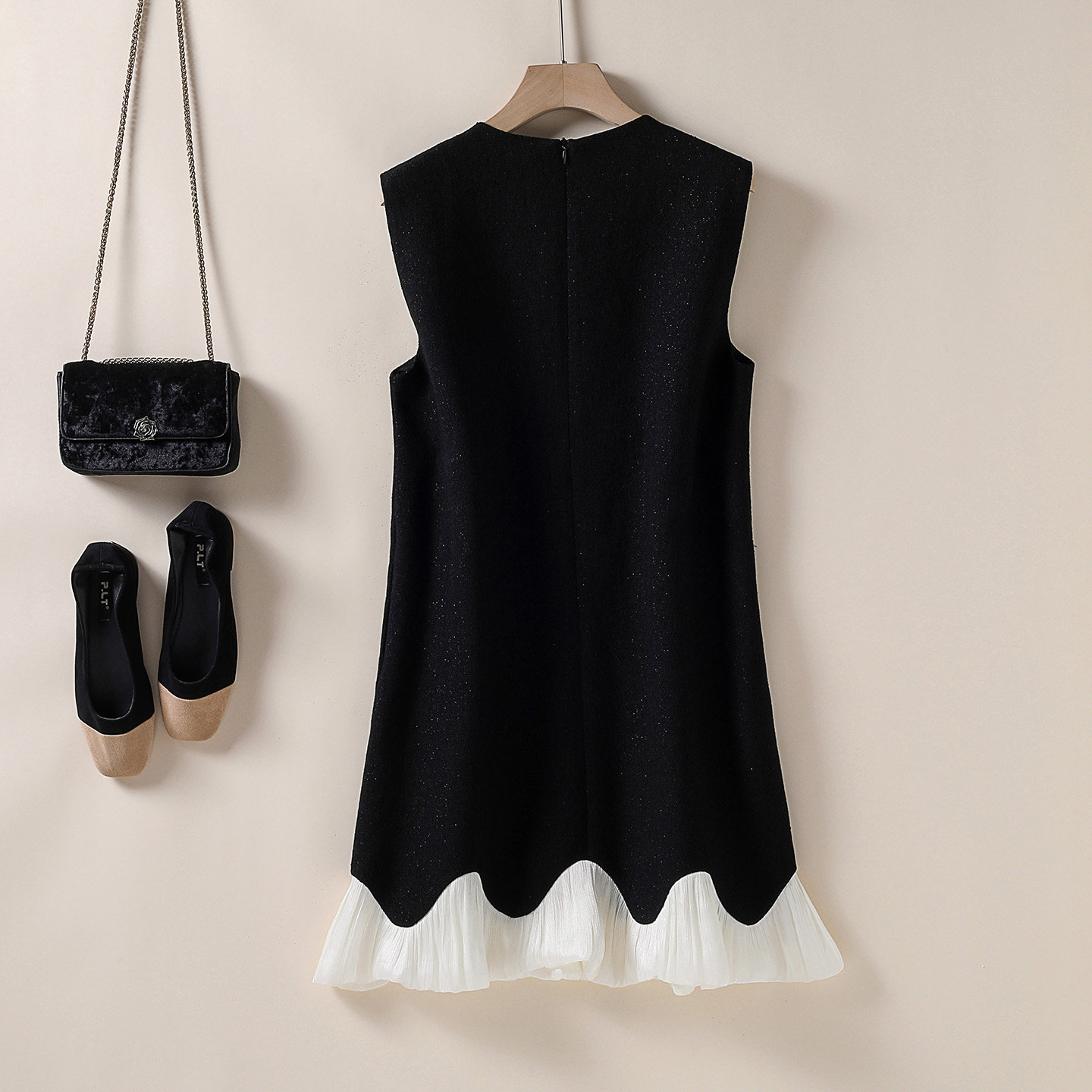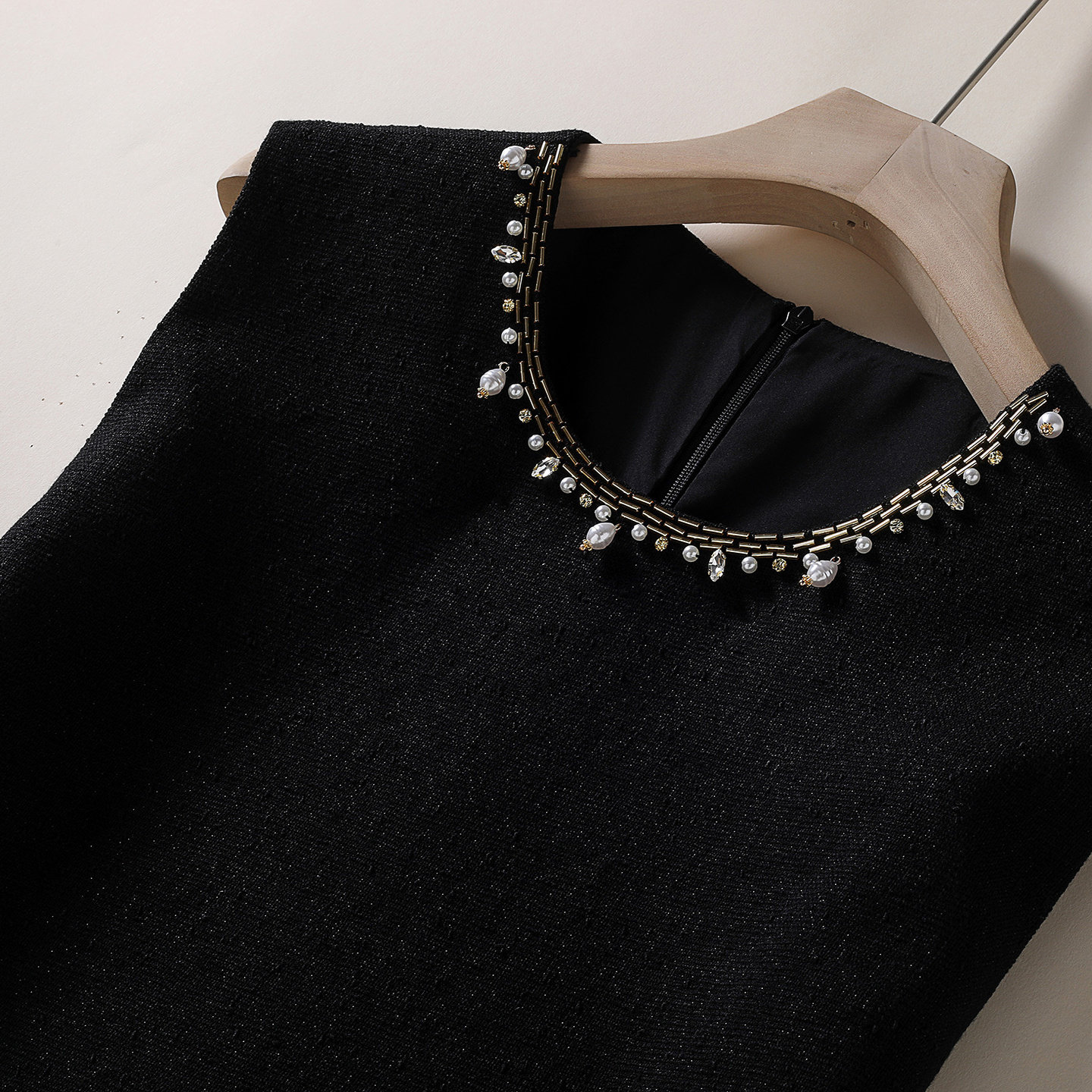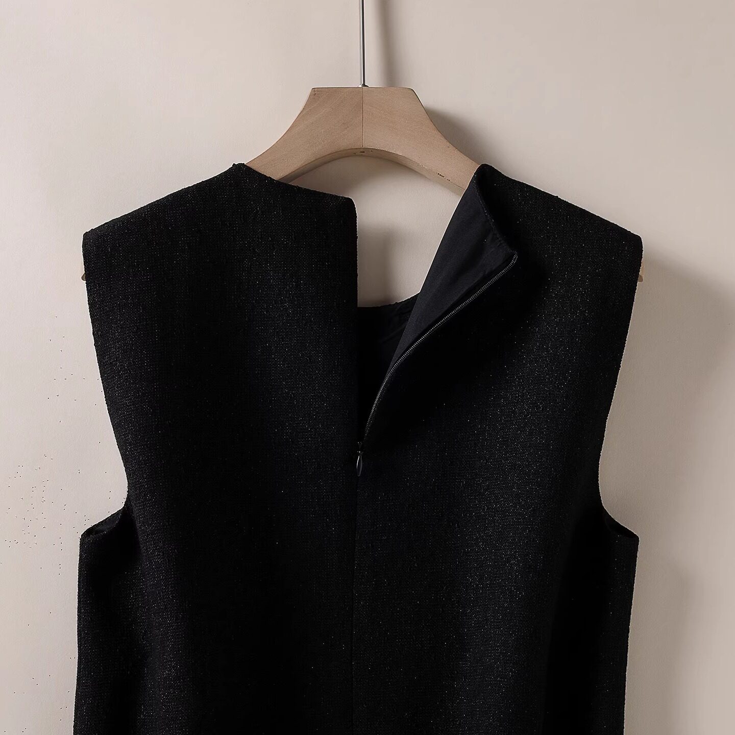 小香风毛呢背心裙复古钉珠小黑裙A字显瘦连衣裙 2025秋冬新款女装