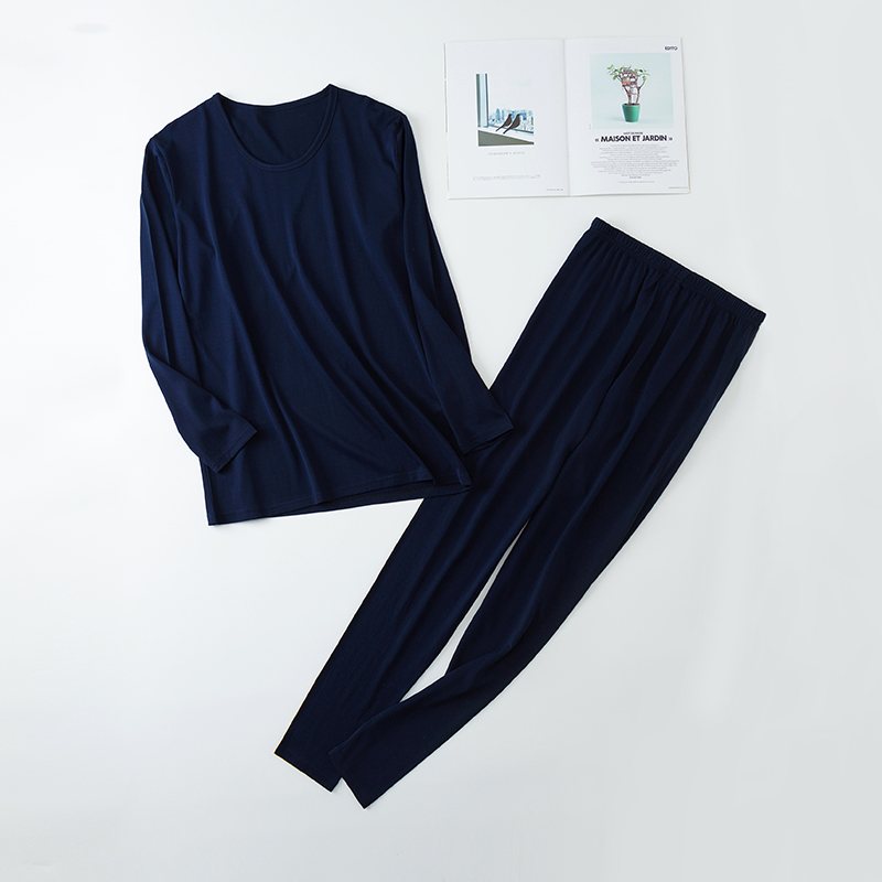 特价男圆领秋桑蚕丝棉睡衣套装针织真丝薄款居家服秋衣秋裤棉毛衫