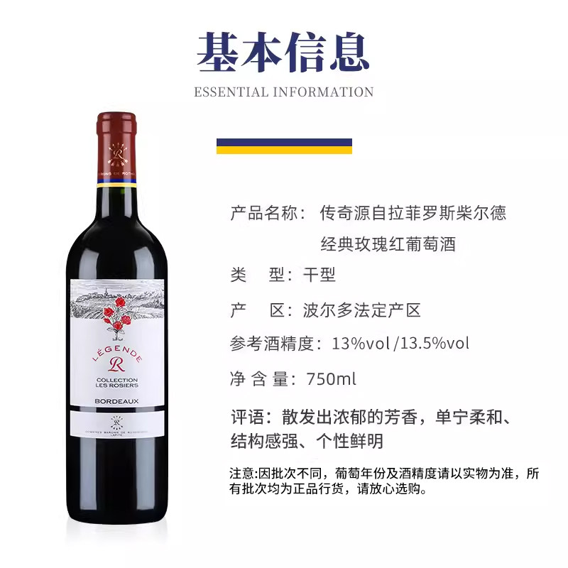 拉菲传奇玫瑰法国进口赤霞珠红酒