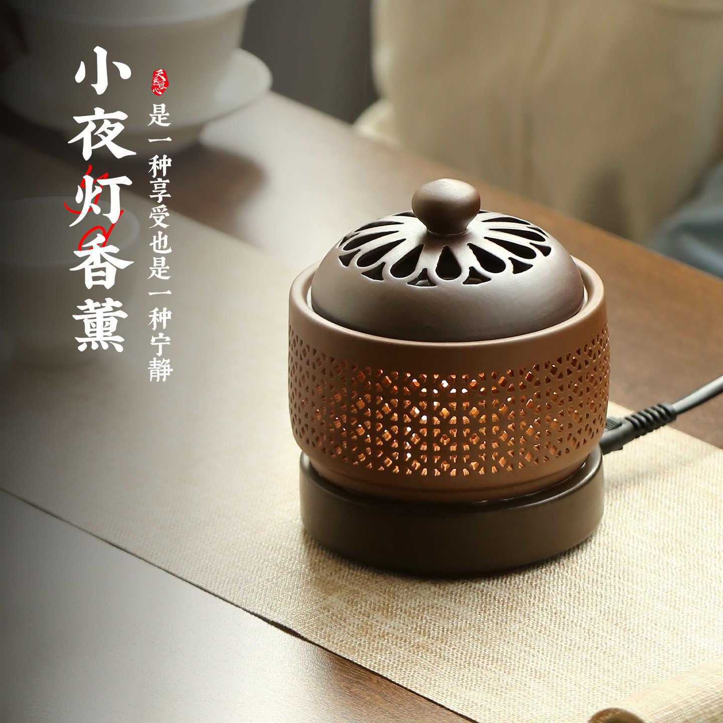 电子香熏炉家用室内小夜灯定时调温创意陶瓷香炉檀香沉香电薰香炉