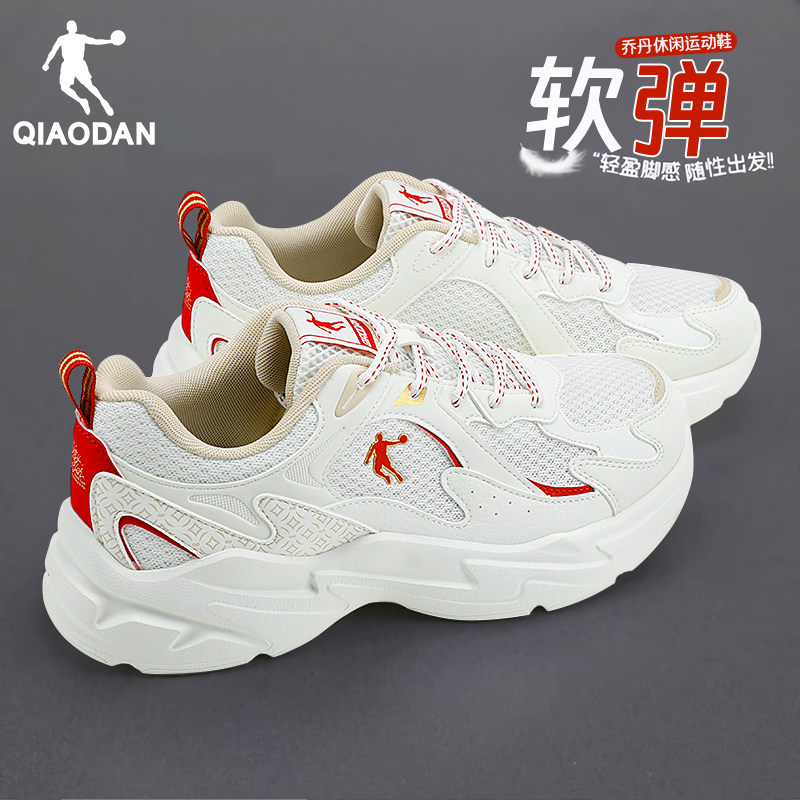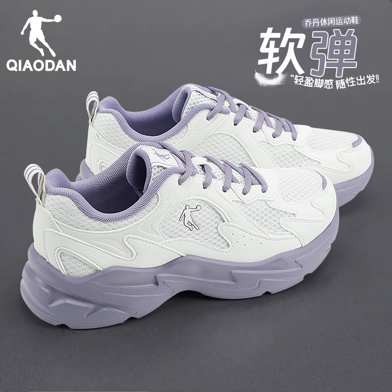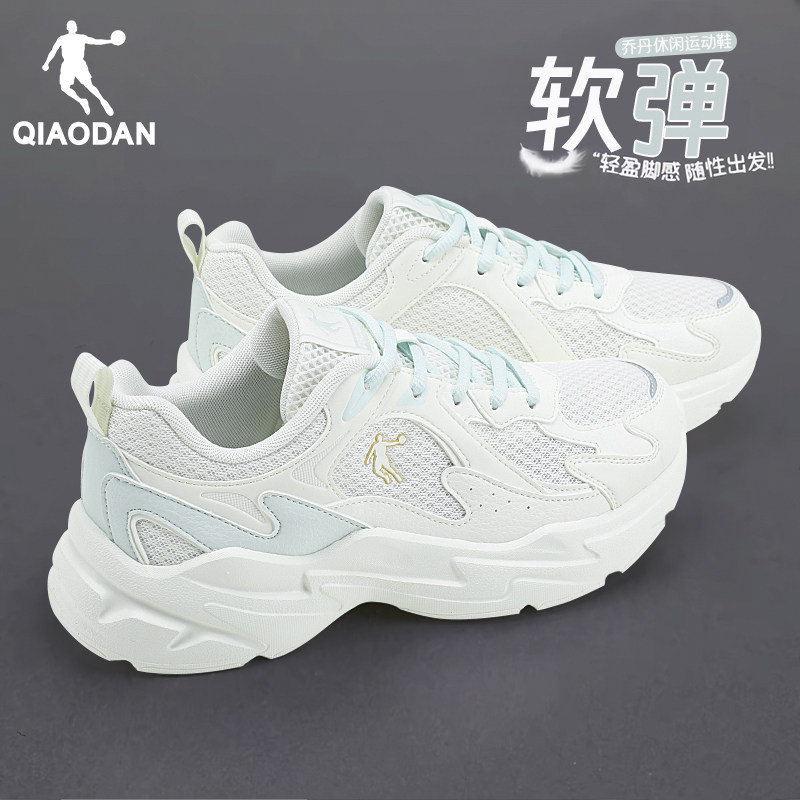 乔丹女鞋厚底老爹鞋透气网面软弹跑步鞋系带轻便减震休闲运动鞋