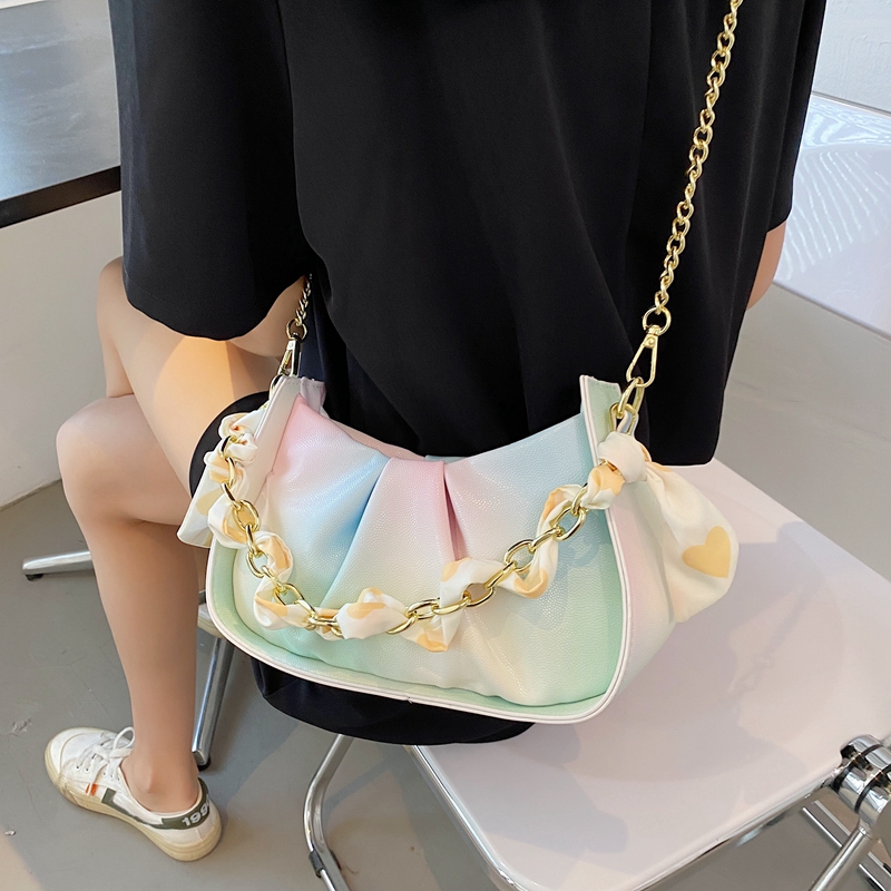 今年流行小包包女2025夏季新款百搭褶皱云朵包法式小众链条斜挎包
