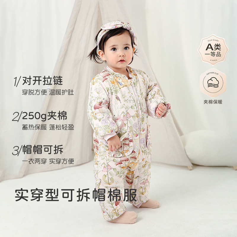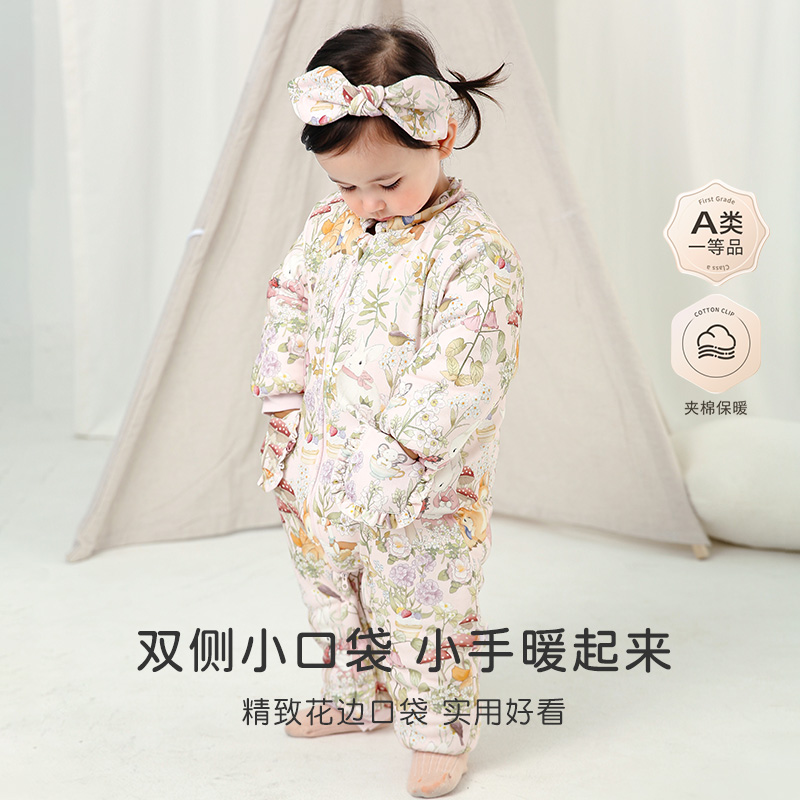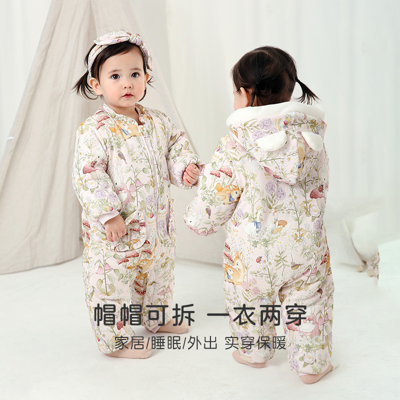 Hololulu婴儿秋冬衣服女宝宝连体衣加厚冬装棉服冬季外出公主服