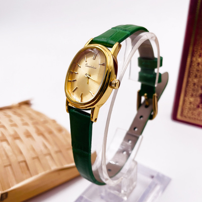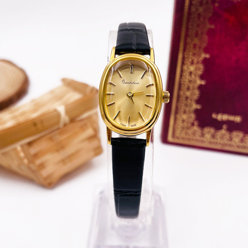 上海宝石花椭圆鹅蛋小巧二针镀金美拉德配饰简约皮带石英手表女