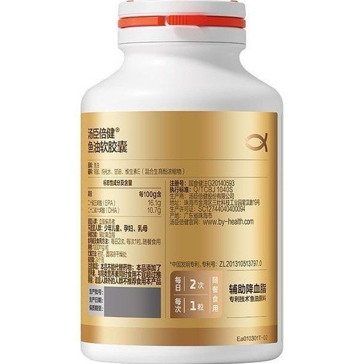汤臣倍健 鱼油软胶囊200粒 辅助降血脂成人中老年人男女
