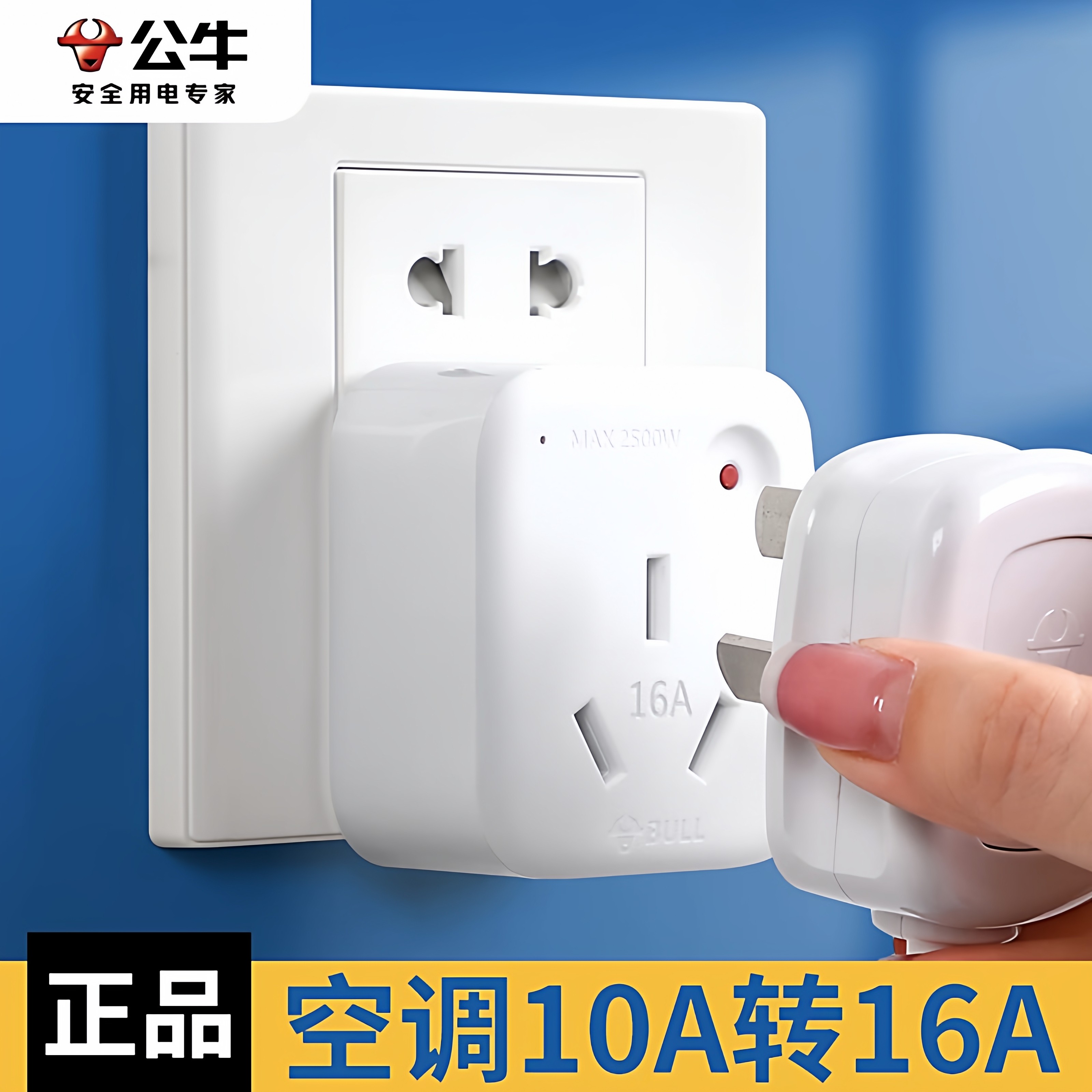 公牛转换插头10a转16a家用空调热水器多用电源转换器插座过载保