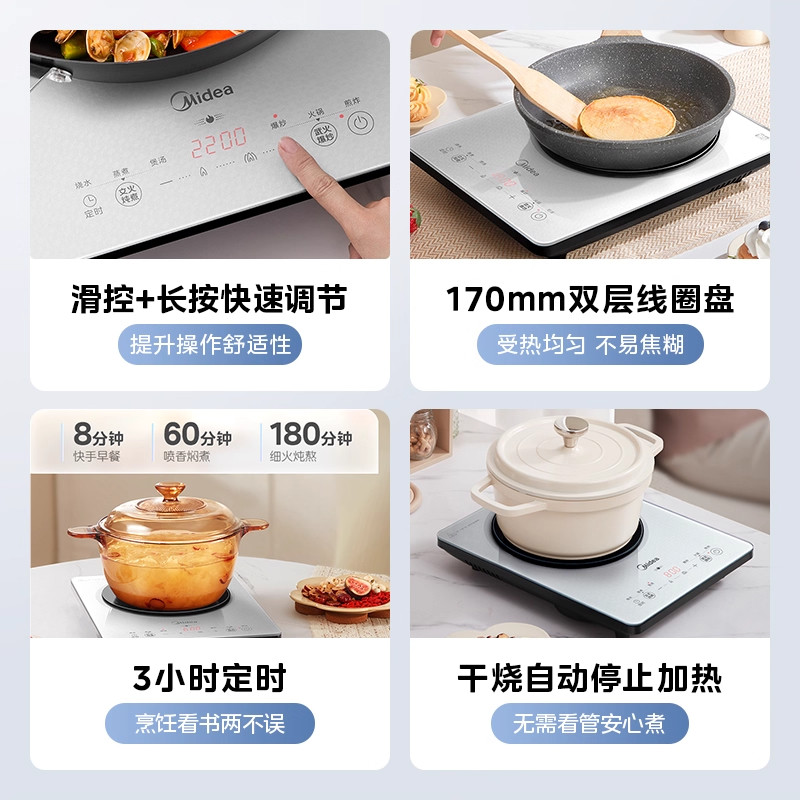 美的铂钻电磁炉大火力家用炒菜火锅专用官方正品一体式电磁炉M1