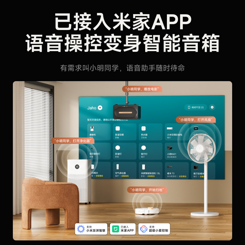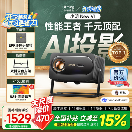 【性能王者】小明New V1高亮AI智能投影仪家用超高清手机投屏卧室客厅家庭影院 已接入米家APP 政府补贴15%