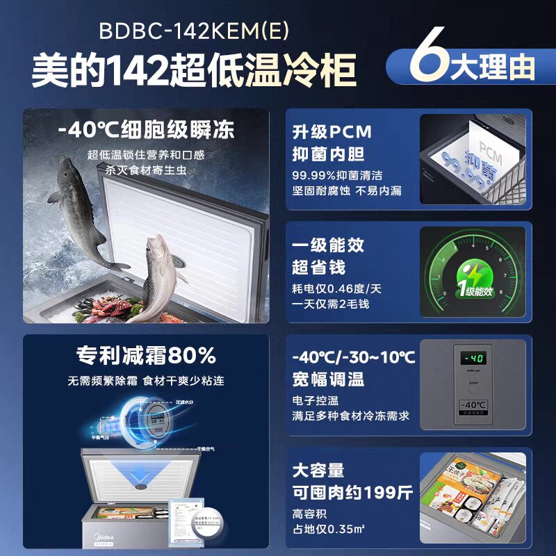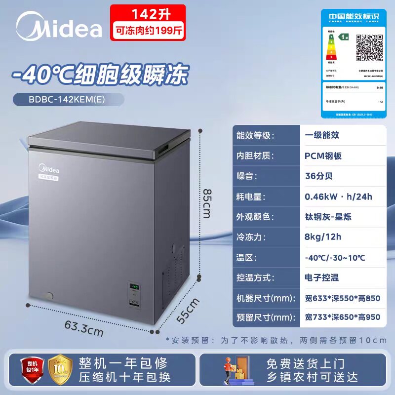 【新品】美的142L小冰柜家用小型冷柜超低温冷冻冷藏一级冰箱补贴