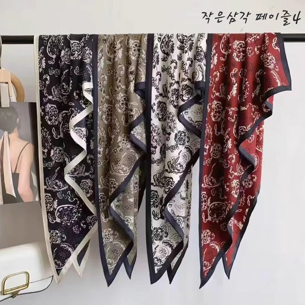 围巾三角巾BB秋新款装饰时尚气质百搭优雅碎花图案女士绑腰间9