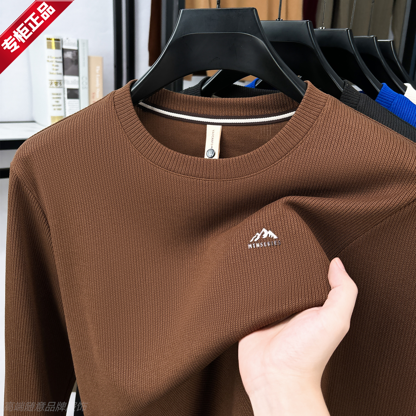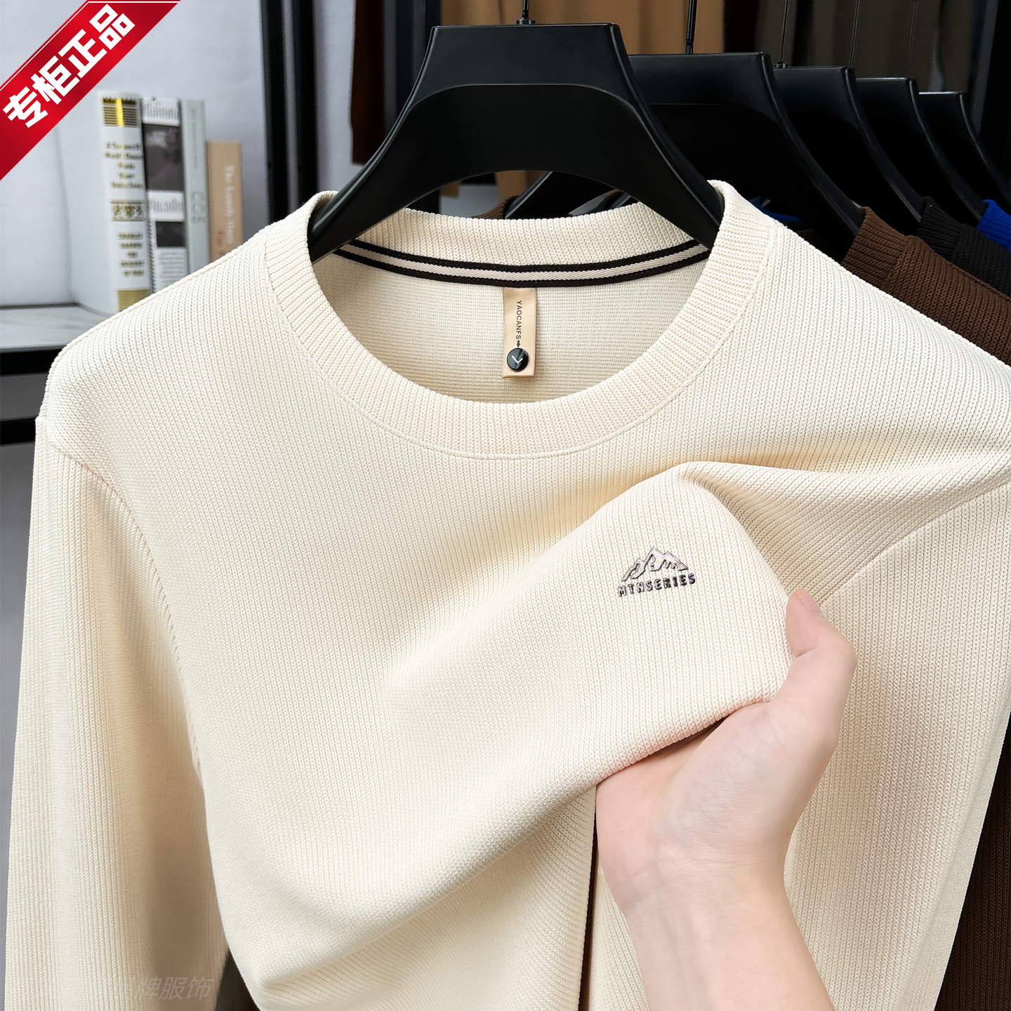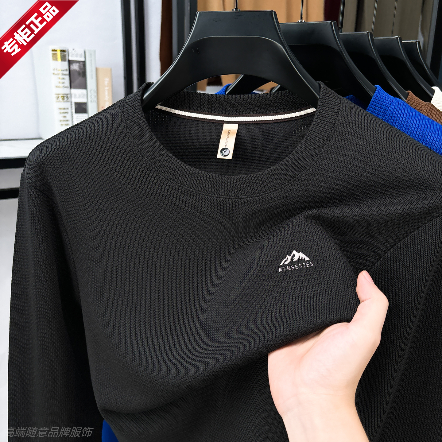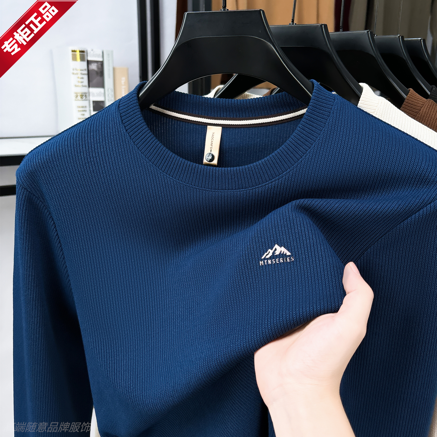 秋季高档男士长袖t恤克莱因蓝圆领印花打底衫亲肤休闲宝蓝色上衣T
