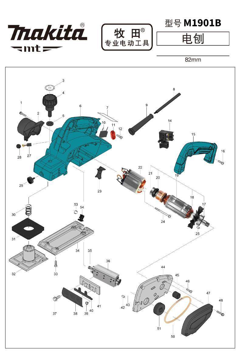 makita日本牧田电刨配件1901转子机壳碳刷82刨刀边盖底板皮带开关
