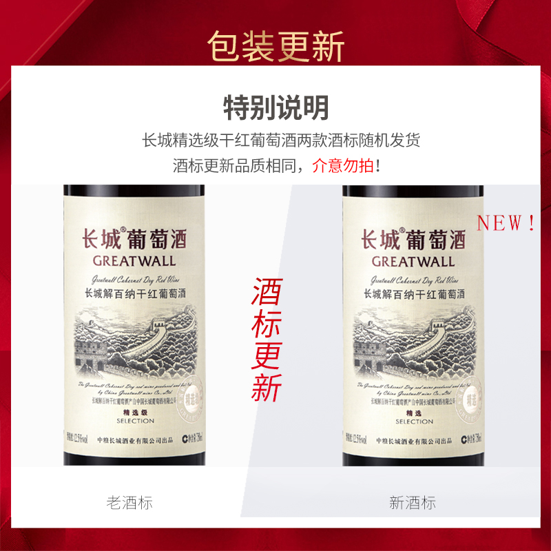 中粮长城干红葡萄酒 精选级解百纳干红整箱750ml*6支国产红酒正品