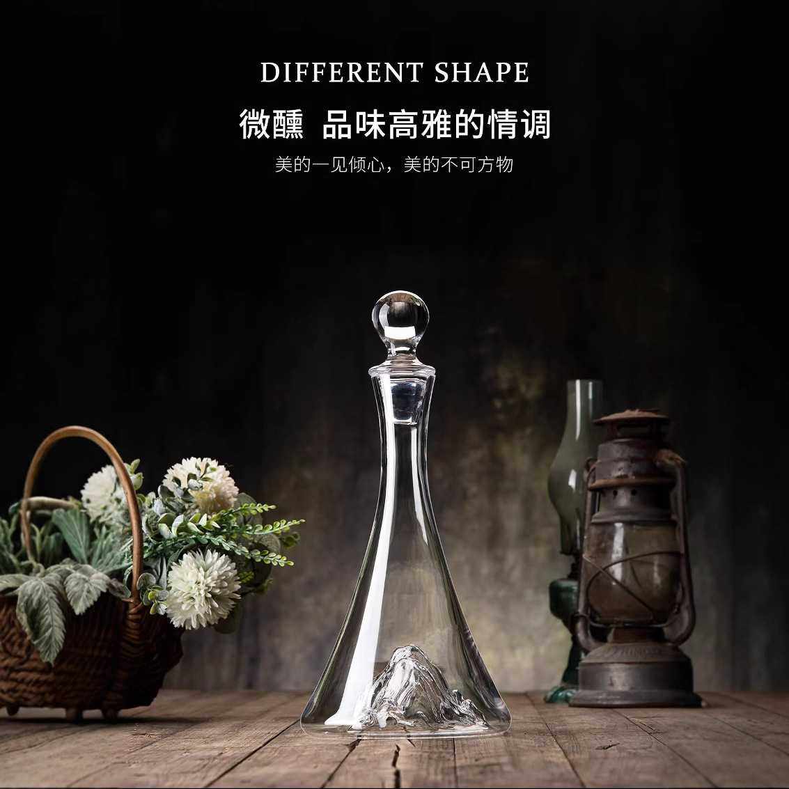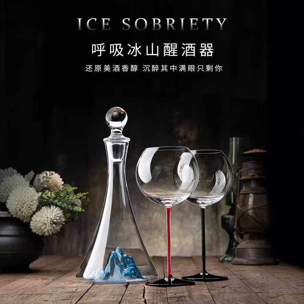 创意冰山瀑布醒酒器水晶红酒杯套装家用高脚杯葡萄酒杯酒具带杯架