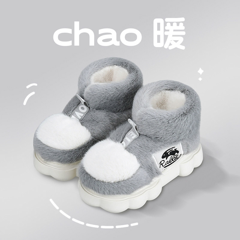 高帮棉拖鞋女士冬季包跟室内家居防滑保暖加厚底毛毛绒棉鞋男外穿