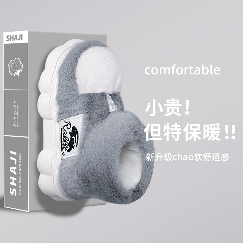 鲨际毛绒棉拖鞋加绒保暖棉鞋外穿