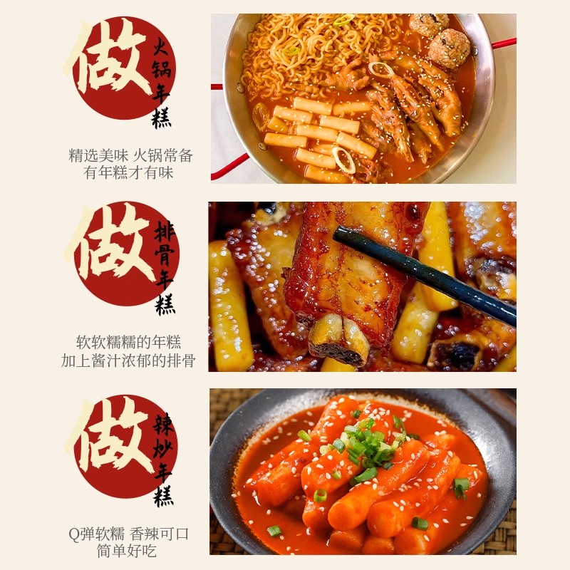 朴阿姨韩式长条年糕500g韩国芝士辣炒年糕条部队火锅速食鱼饼商用