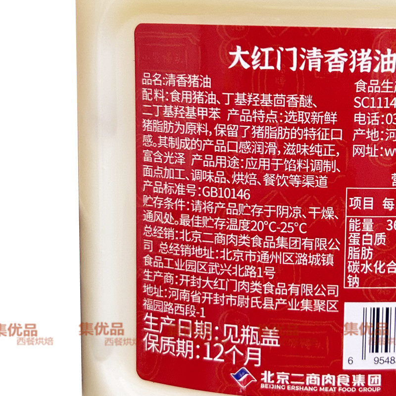 大红门清香食用猪油首农二商熟猪板油500g炒菜拌粉拌饭烘焙猪白油