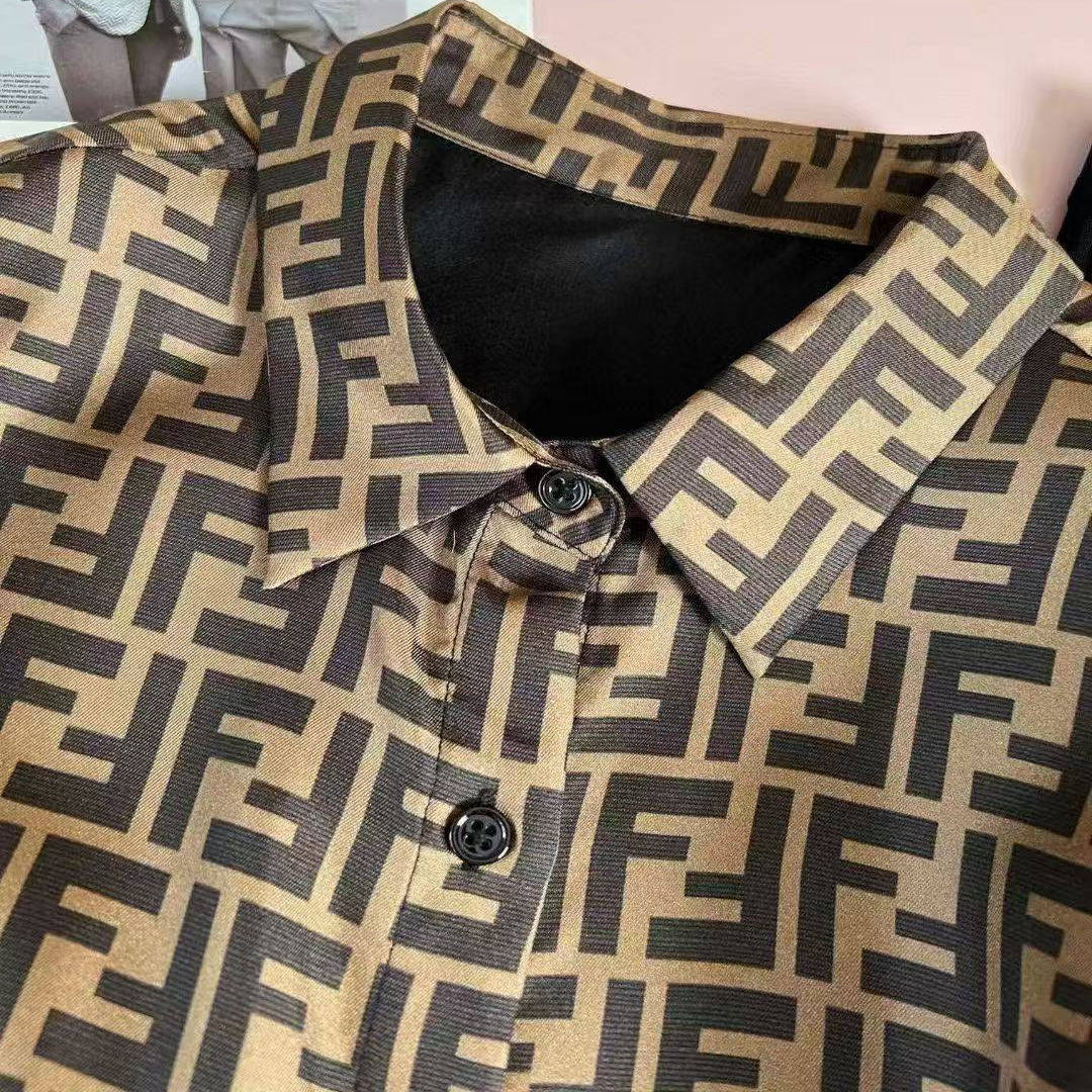 F字母重磅真丝衬衫女士休闲上衣