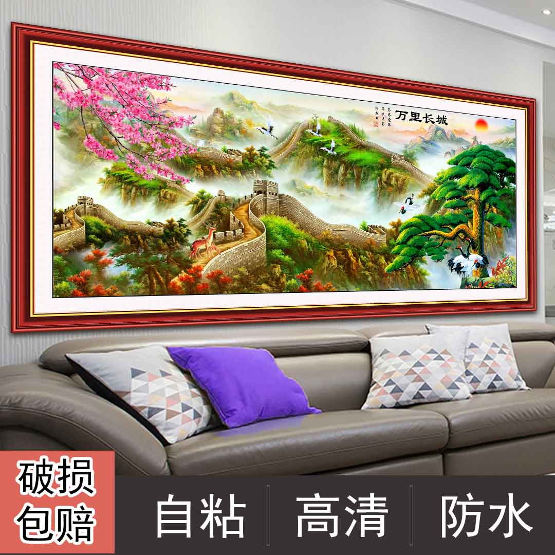 现代装饰画山水画客厅贴画沙发背景墙自粘墙壁纸中式客厅装饰壁画