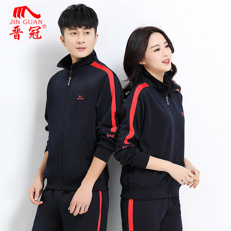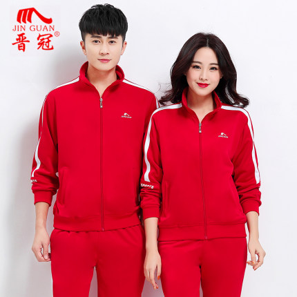 晋冠新款红色运动套装女男春秋佳木斯广场舞服装中老年团体运动服