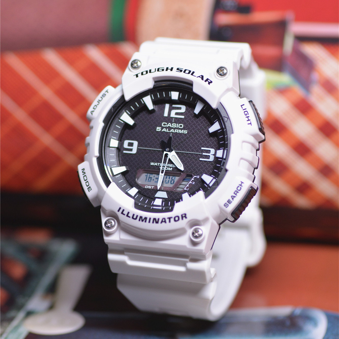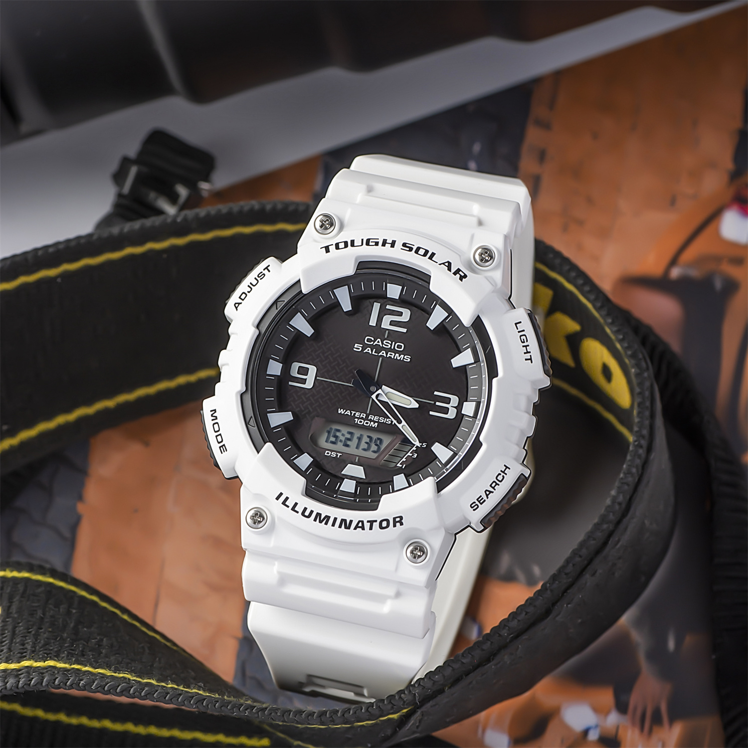卡西欧手表男女情侣学生防水夜光双显太阳能光能石英男表AQ-S810W