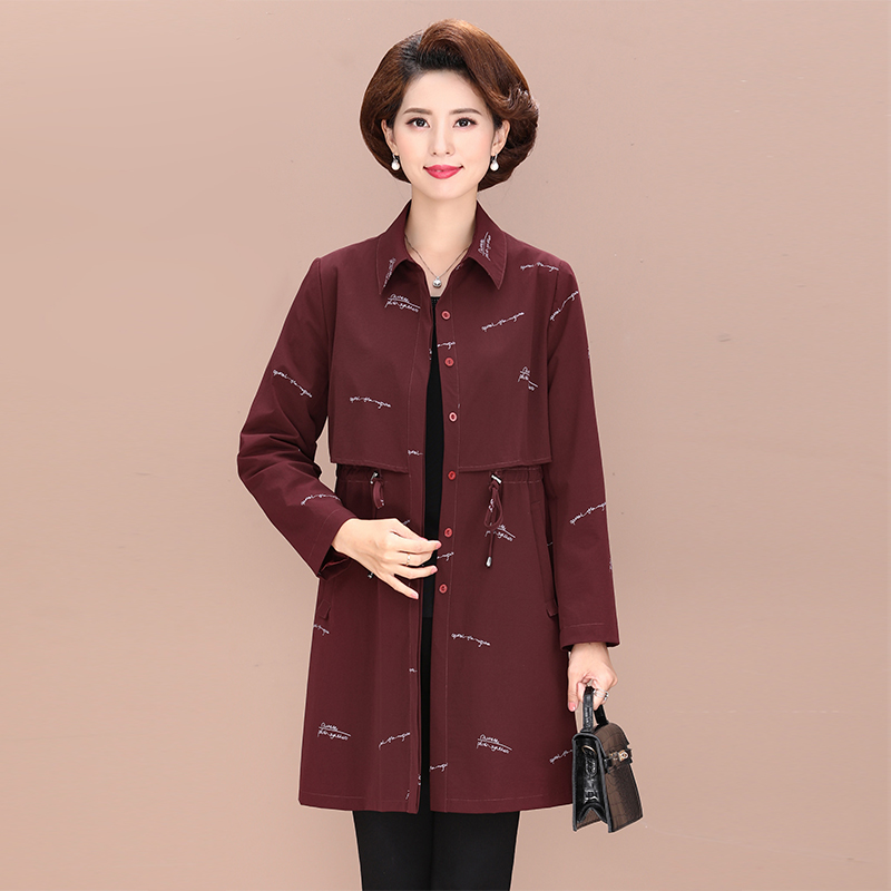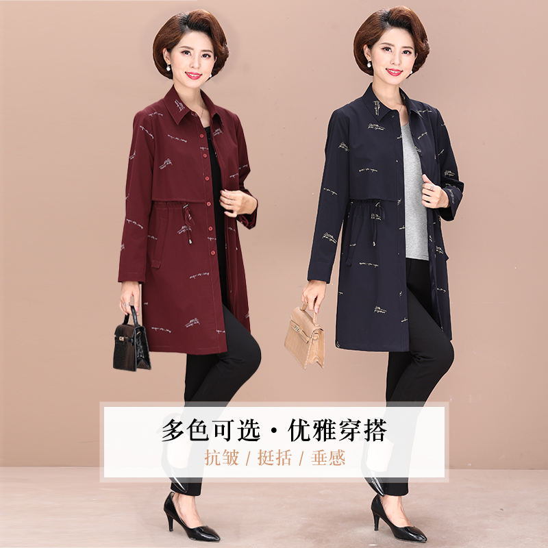 中年妈妈春秋外套老人中长款上衣洋气高贵夫人大码风衣阔太太女装