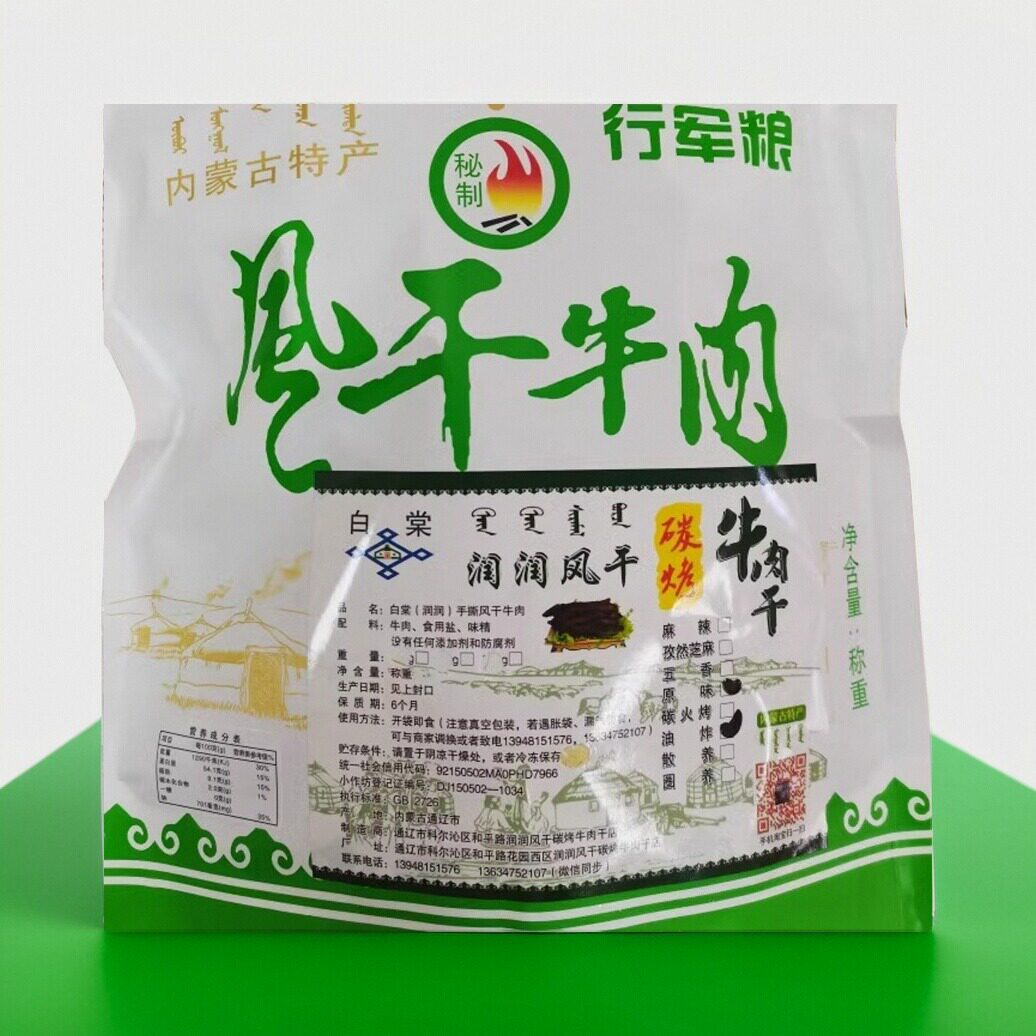 内蒙通辽润牛肉干店真空油炸风干牛肉开袋即食原味麻辣孜然五香