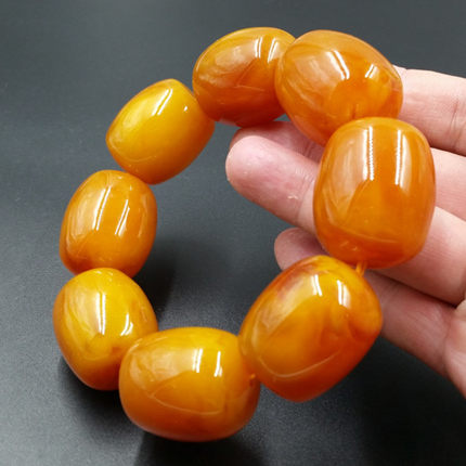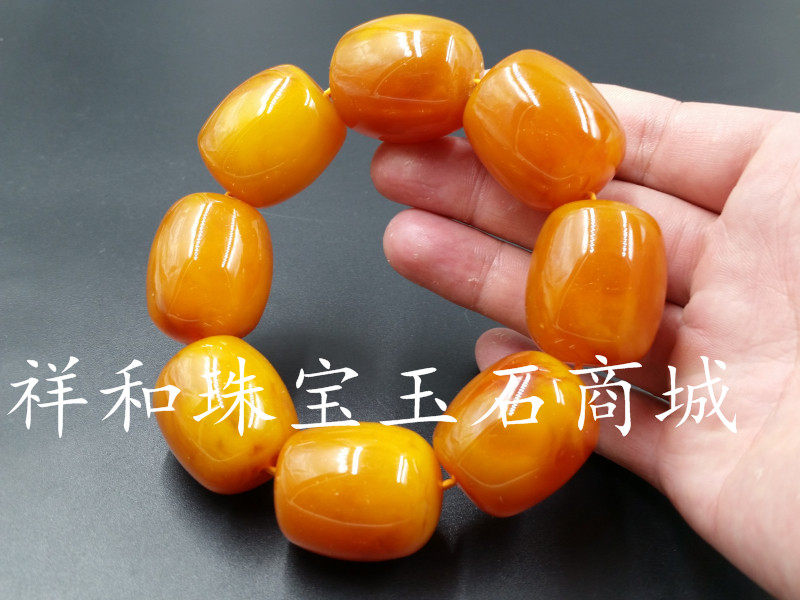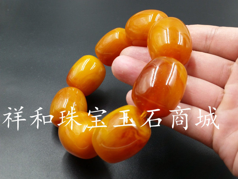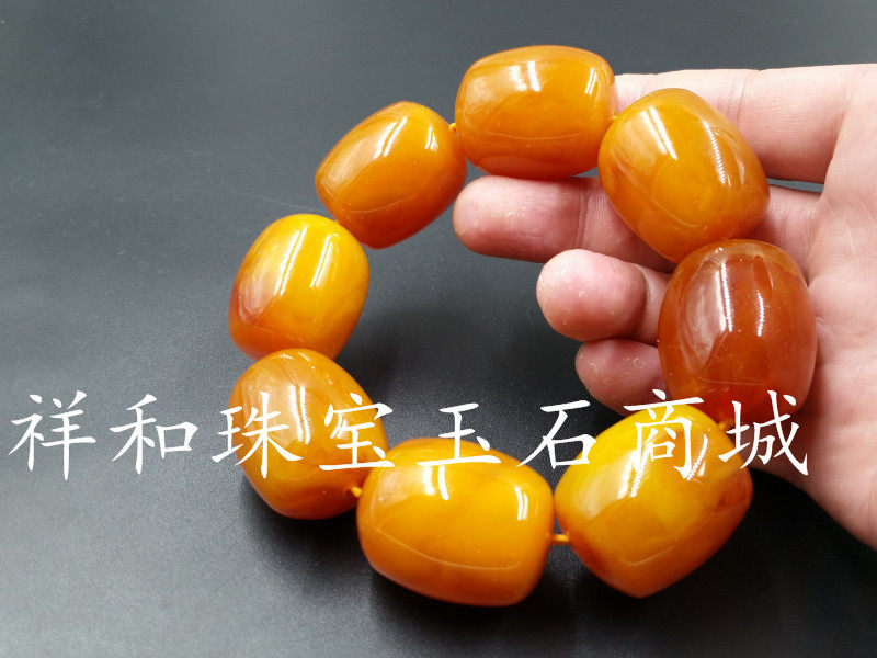 高档精美人造琥珀蜜蜡桶珠手链老蜜蜡路路通手链鸡油黄蜜蜡手串