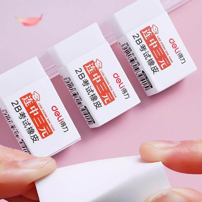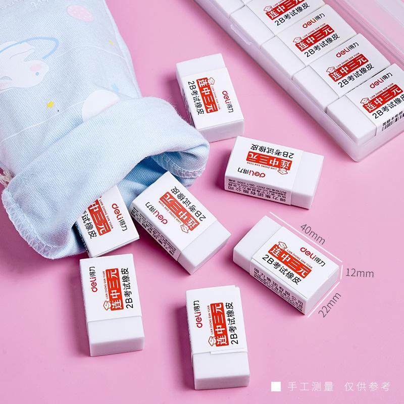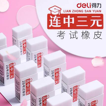 得力2B橡皮擦连中三元考试专用铅笔擦中小学生无碎屑美术学习用品