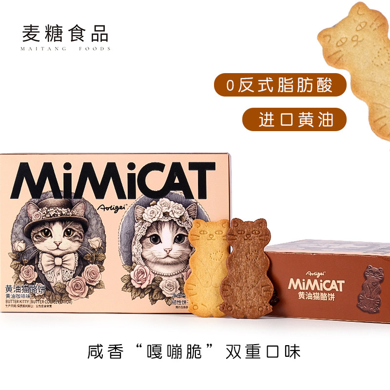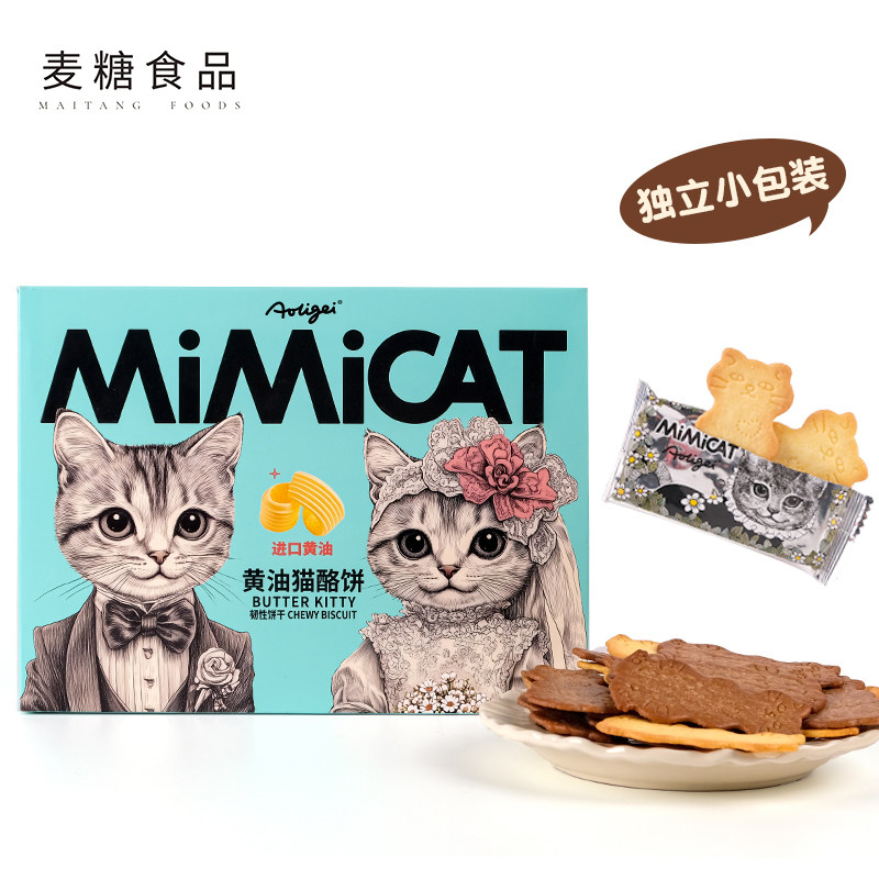 奥力给MIMICAT黄油猫酪曲奇动物饼干办公室充饥休闲解馋网红零食
