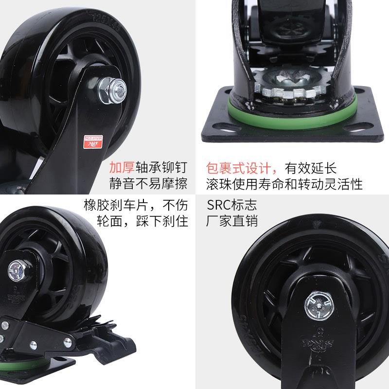 向荣SRC脚轮万向轮聚氨酯轮子静音4寸5寸6寸8寸黑PU重型工业脚轮