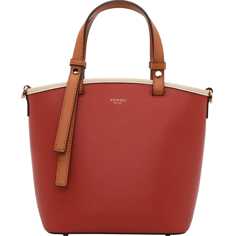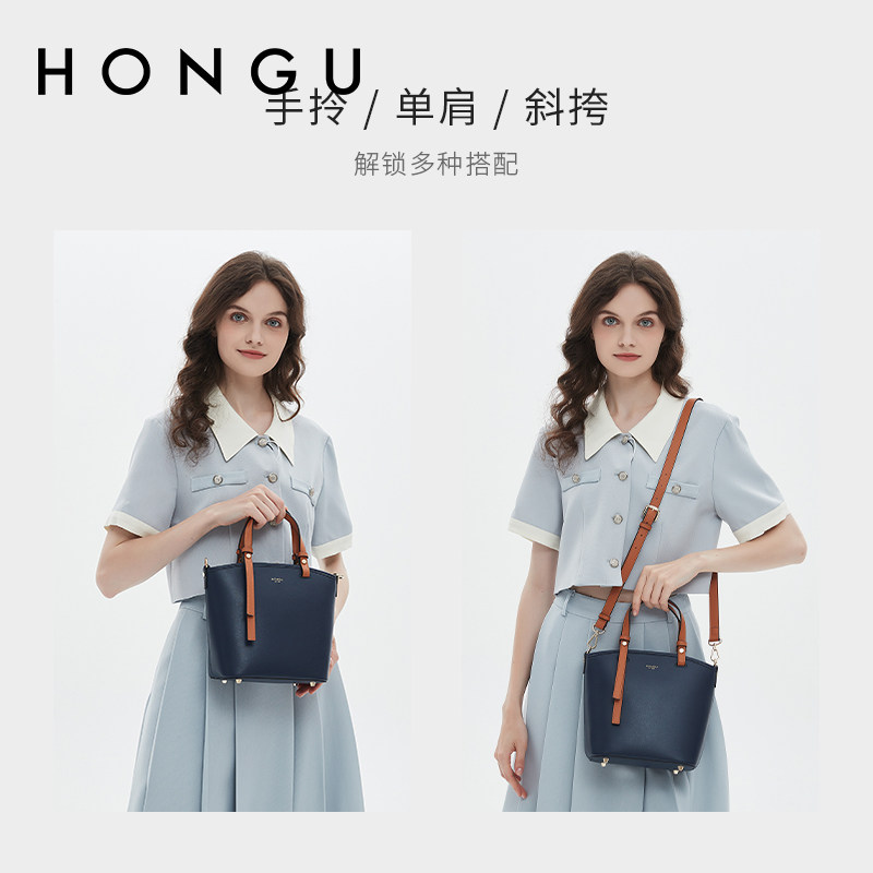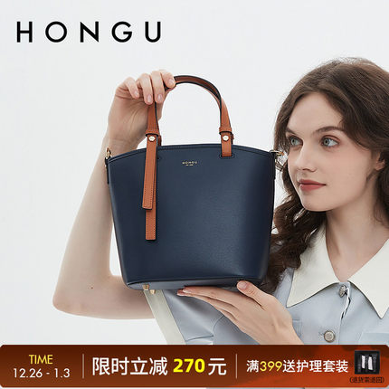 HONGU红谷包包女士包秋冬撞色真皮大容量单肩包手提包托特包水桶