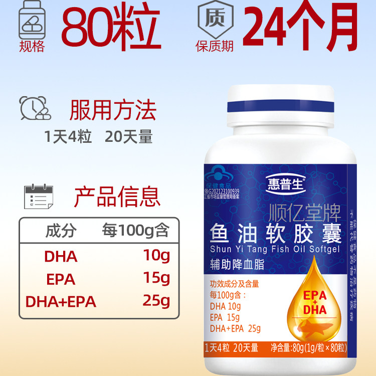 惠普生鱼油软胶囊80粒深海鱼油中老年人辅助降血脂可搭大豆磷脂