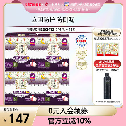 LG贵艾朗贵爱娘卫生巾女品牌正品姨妈巾 夜用33cm12P*4 棉非液体