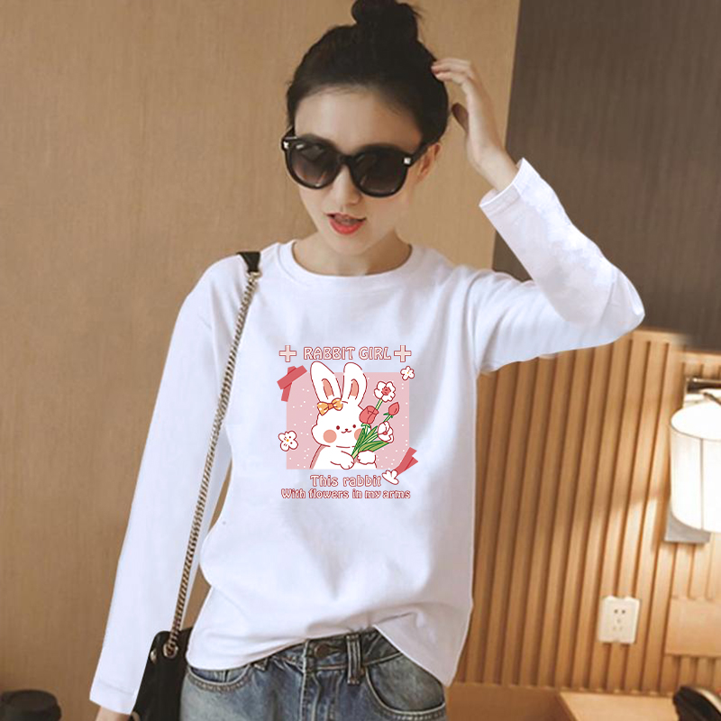 纯棉打底衫2025新款女内搭春秋季白色t恤女长袖女装宽松正肩上衣