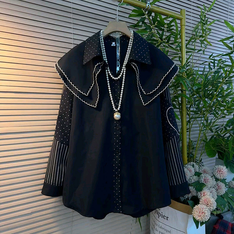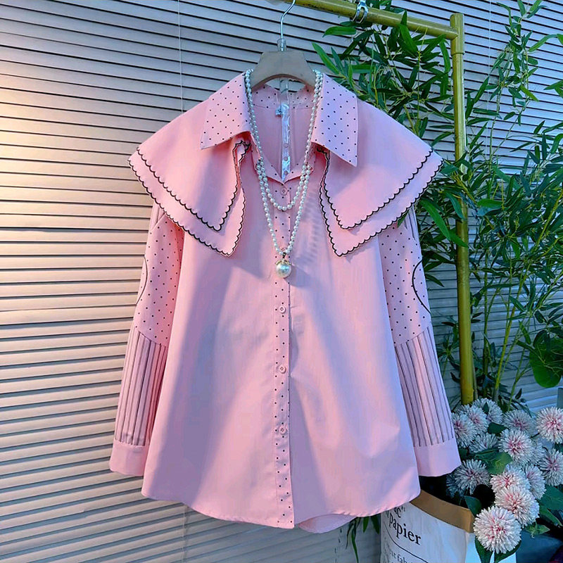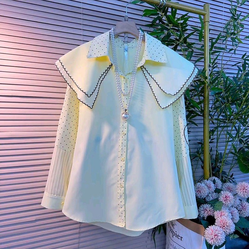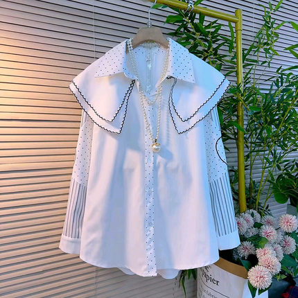 2026春季新款经典波点拼接条纹娃娃领设计感衬衫胖妹妹大码女装潮