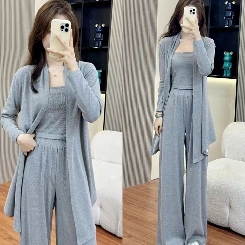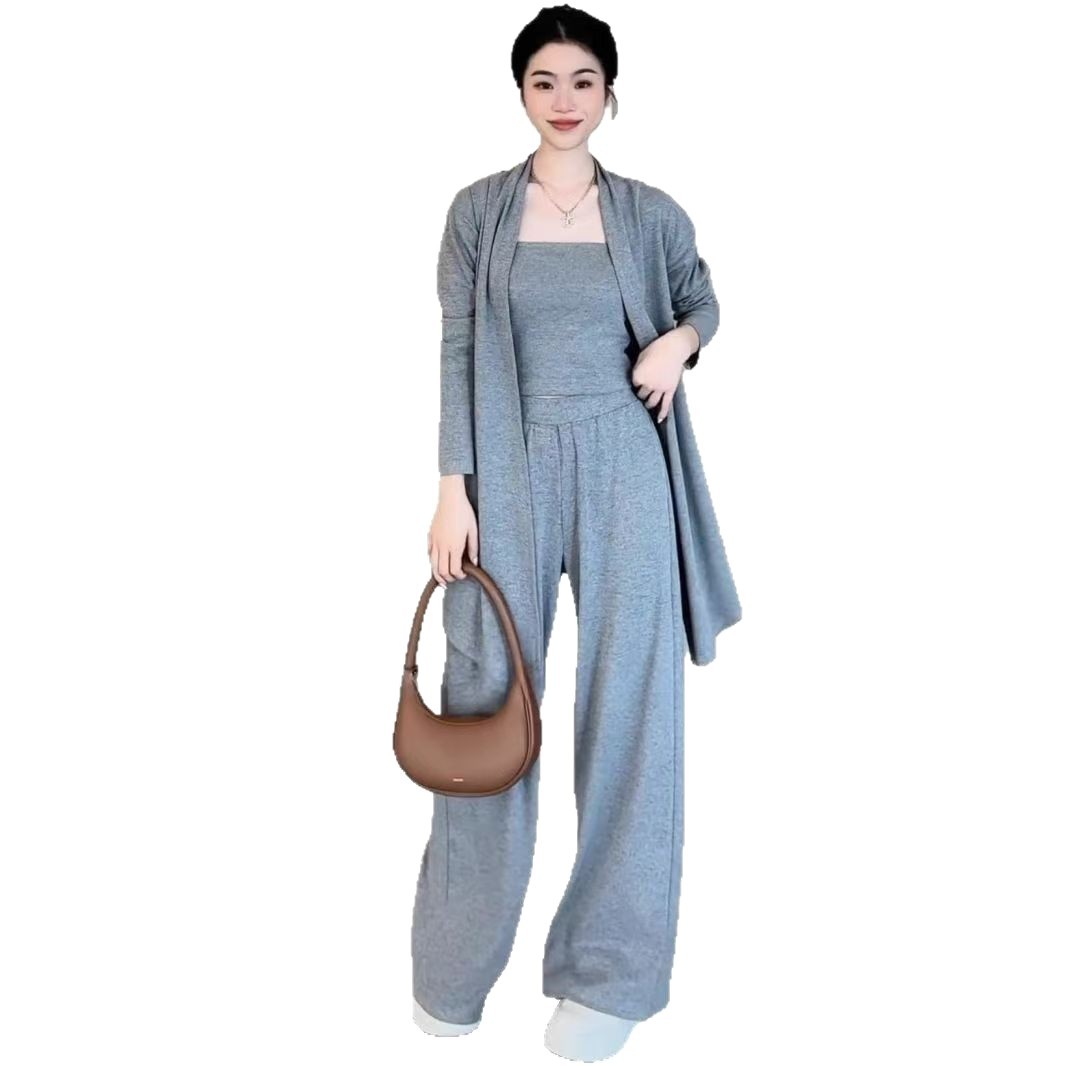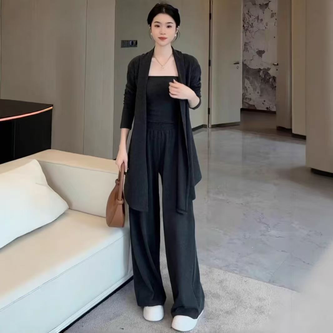 爆款休闲阔腿裤运动套装女秋季吊带高级时尚开衫新款三件套女装