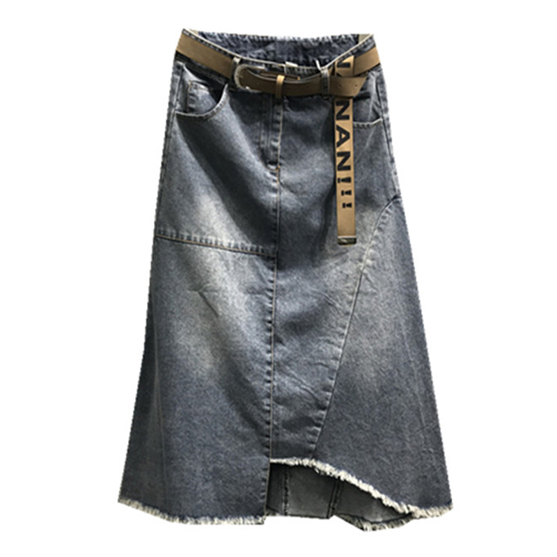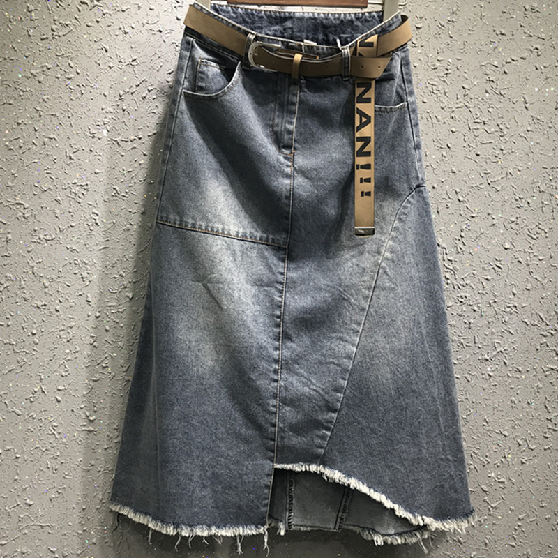 2021年夏季新款a字不规则大码牛仔长裙包裙休闲高腰超火半身裙女